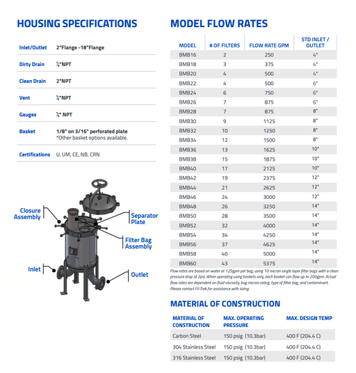 Coastal PumpsOriginal price $0.00 - Original price $0.00Original price$0.00$0.00 - $0.00Current price $0.00| /Daily Rate: $75 Weekly Rate: $225 Monthly Rate: $675 BMB Series Multi-bag Filter Housing Bottom in/bottom out nozzle configuration. Multi-purpos...